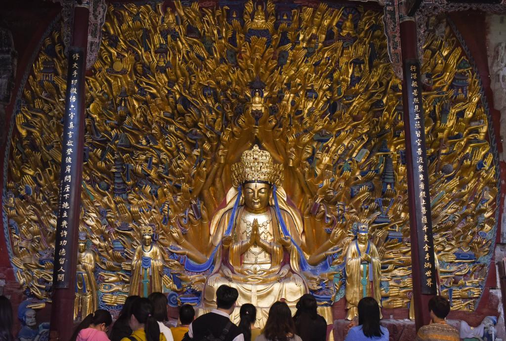 此后,隨著考古研究深入,大足境內先后發現上百處、共5萬余尊摩崖造像,大足石刻的歷史輪廓也逐漸清晰:始建于初唐,至兩宋達鼎盛,集儒、釋、道三教造像之大成,以北山、寶頂山、南山、石門山、石篆山5處石窟最具特色,代表了公元9世紀至13世紀世界石窟藝術的最高水平。