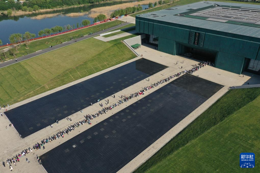 5月1日,游客在河南安陽殷墟博物館新館排隊進場。