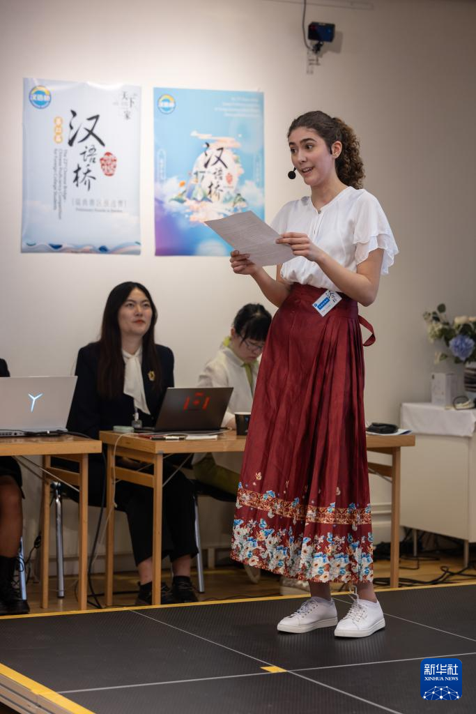 5月5日,在瑞典首都斯德哥爾摩的中國文化中心,參賽學生進行中文水平和才藝展示。