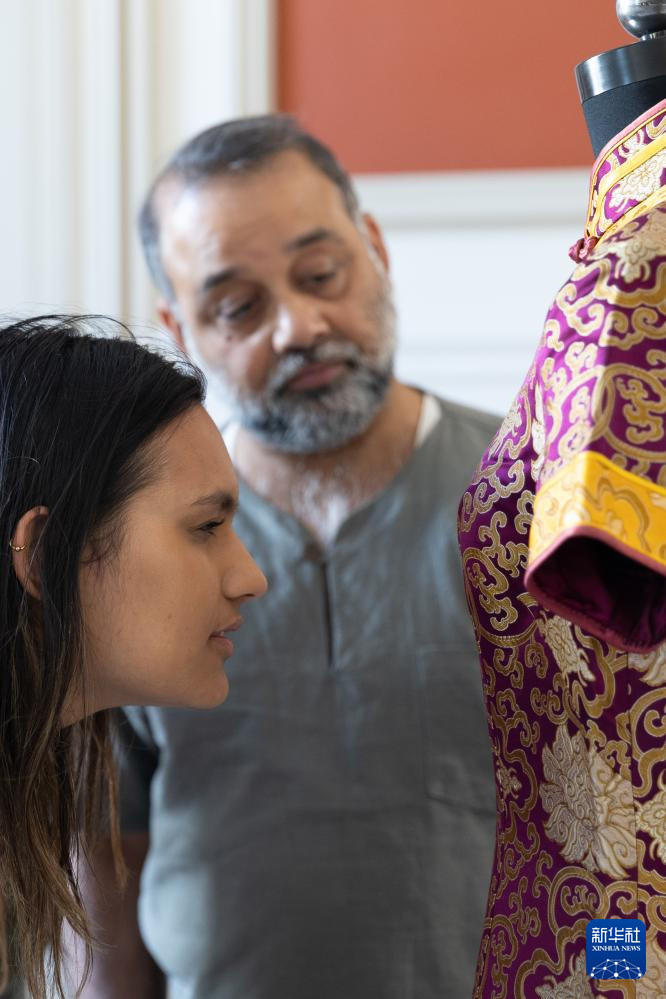 5月13日,人們在比利時布魯塞爾“衷雅匯尚——旗袍與海派文化”展上參觀。新華社記者 孟鼎博 攝