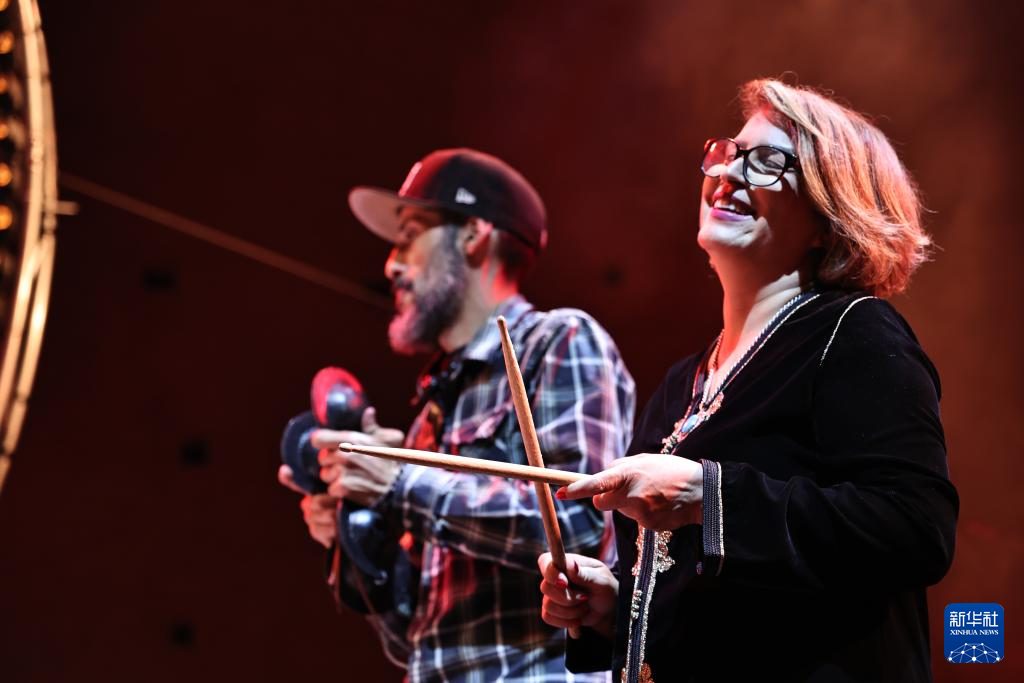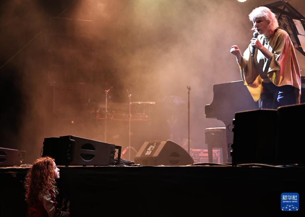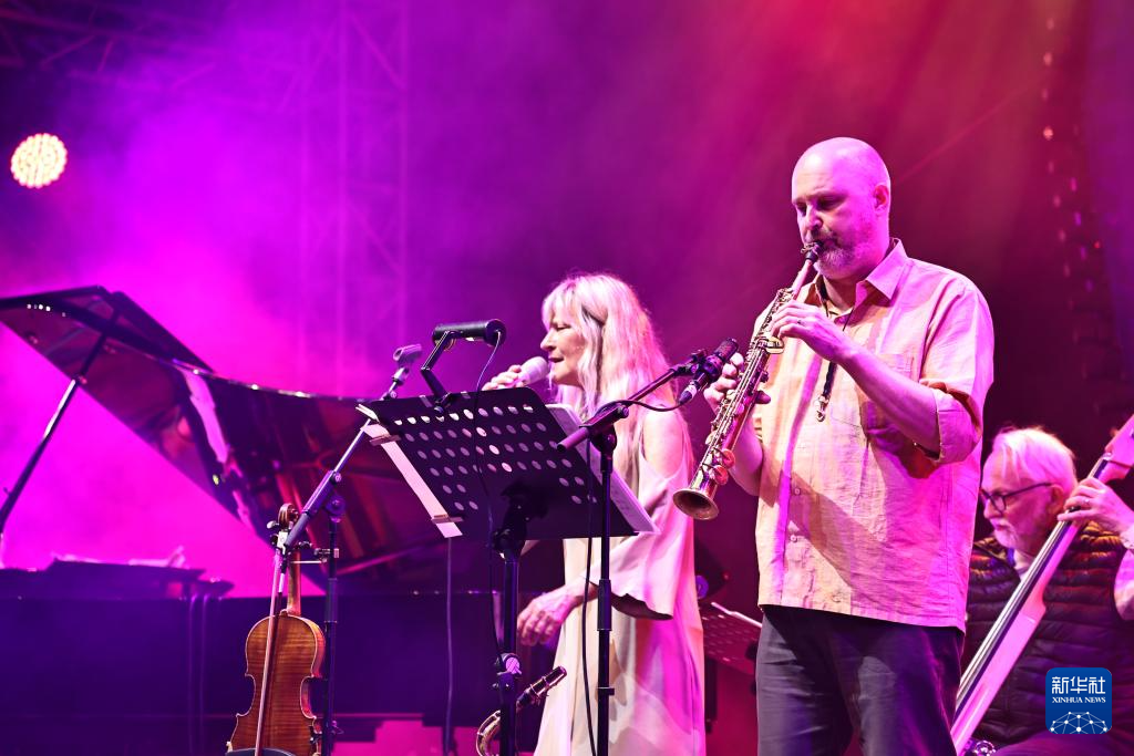 這是5月12日在摩洛哥拉巴特拍攝的第26屆舍拉爵士音樂節閉幕演出現場。