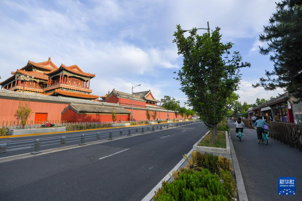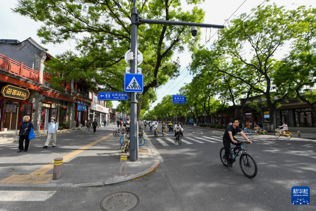5月1日,市民游客在東四北大街騎行。崇雍大街改造推動“慢行優先”“健步悅騎”,推動“車輛優先”向“行人優先”轉變,實現骨干道路功能轉型為綠色交通主導,讓“健步悅騎”體驗更為順暢。