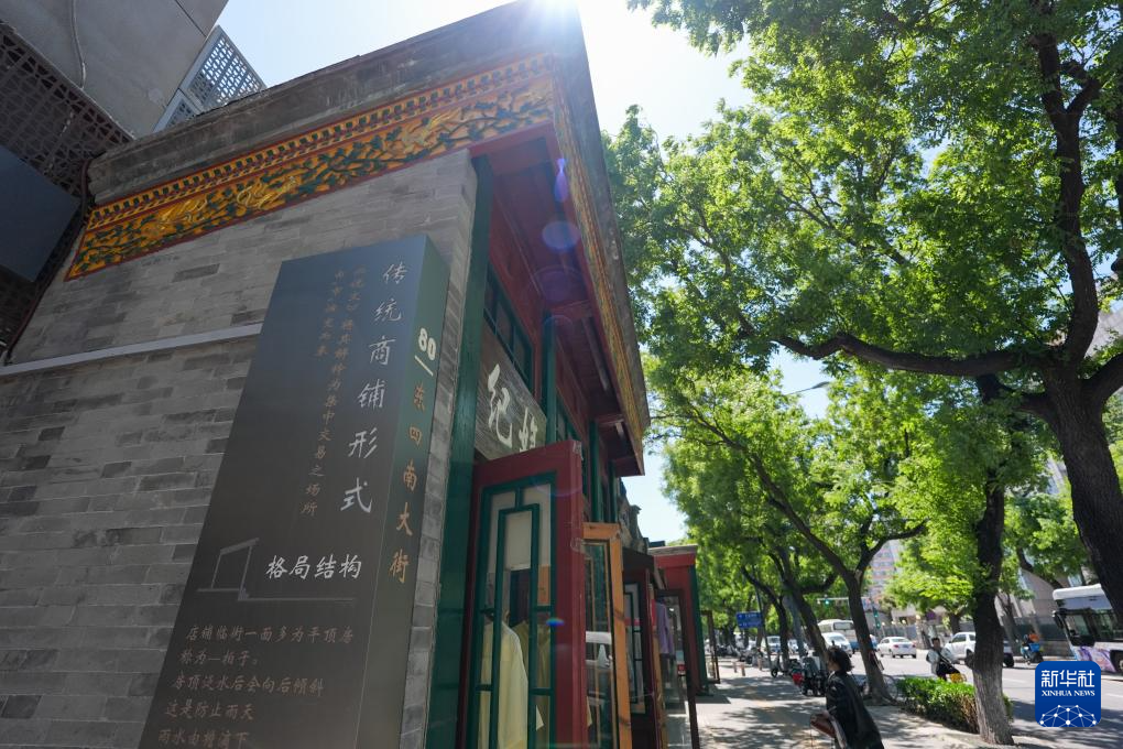 在東四南大街拍攝的介紹東四南大街傳統商鋪形式的裝飾(5月11日攝)。