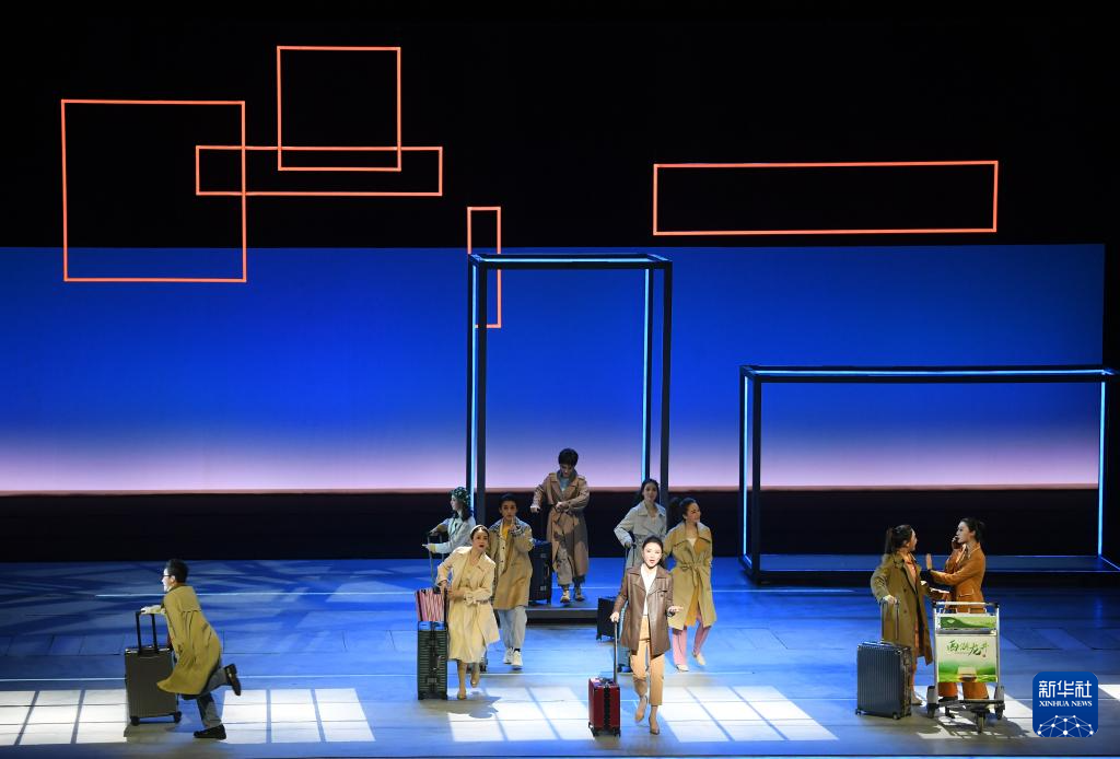 2024年5月1日,浙江小百花越劇院的演員在杭州蝴蝶劇場演出新編現代戲《錢塘里》。新華社記者 翁忻旸 攝