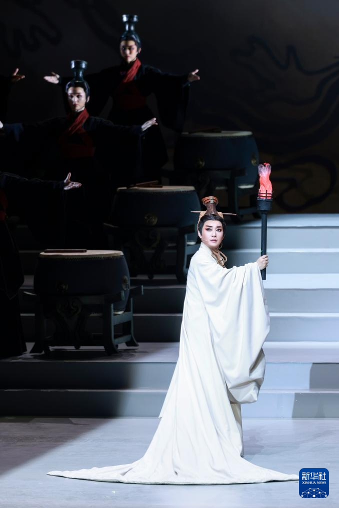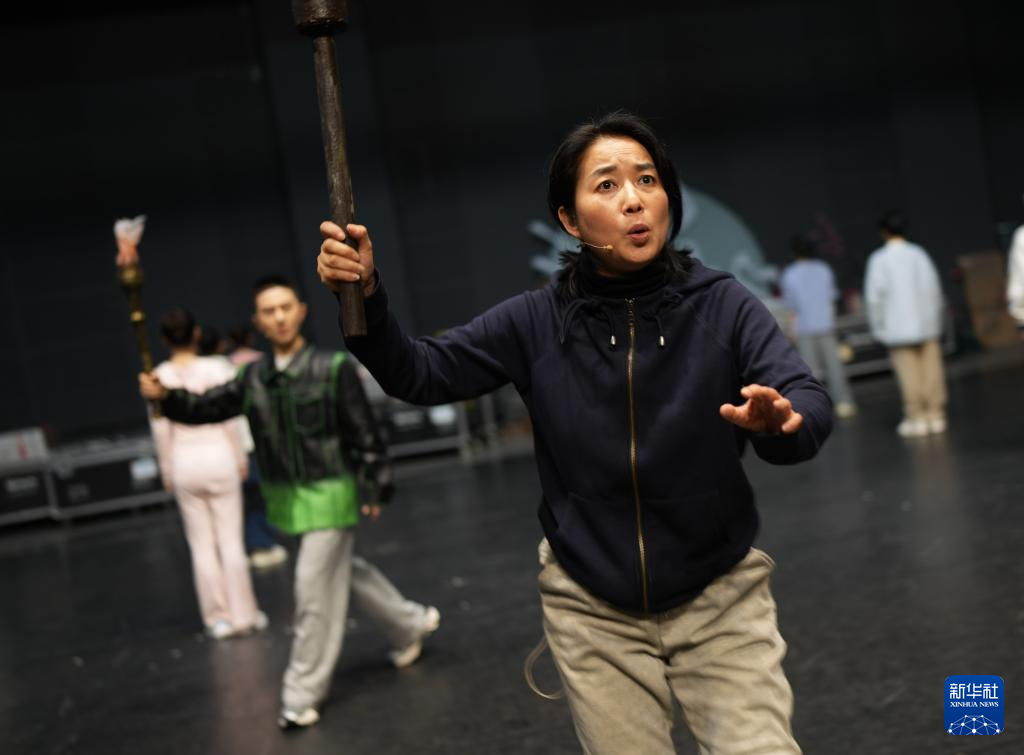 2024年4月7日,浙江小百花越劇團團長蔡浙飛在浙江杭州參加新編歷史劇《蘇秦》的排練。新華社記者 翁忻旸 攝