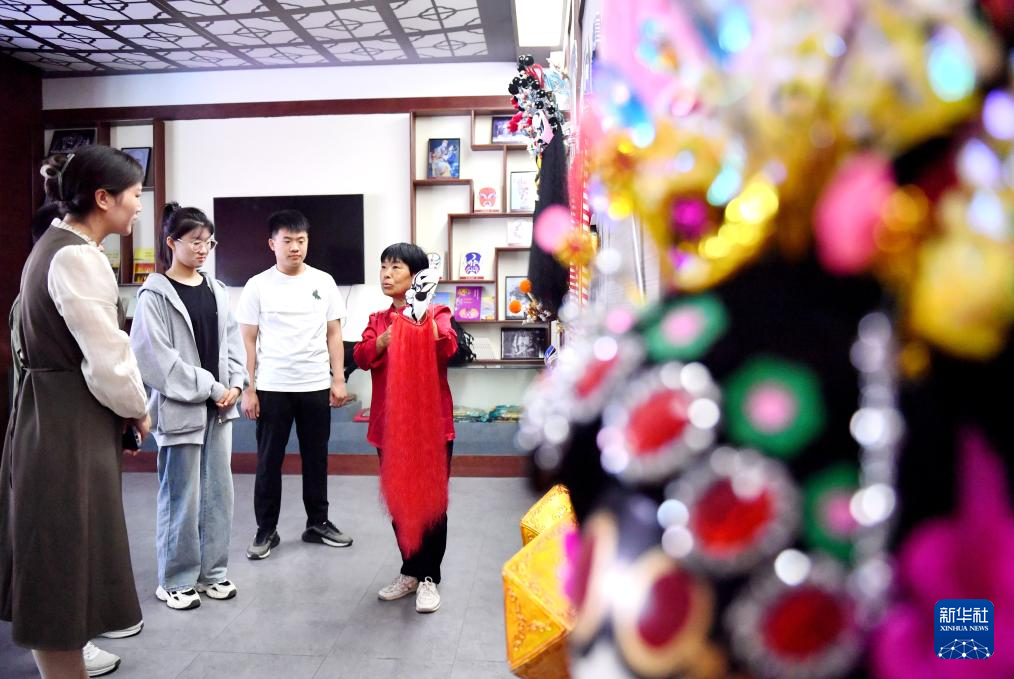 5月15日,時敬華(右一)在威縣亂彈紀念館為戲曲愛好者介紹亂彈知識。