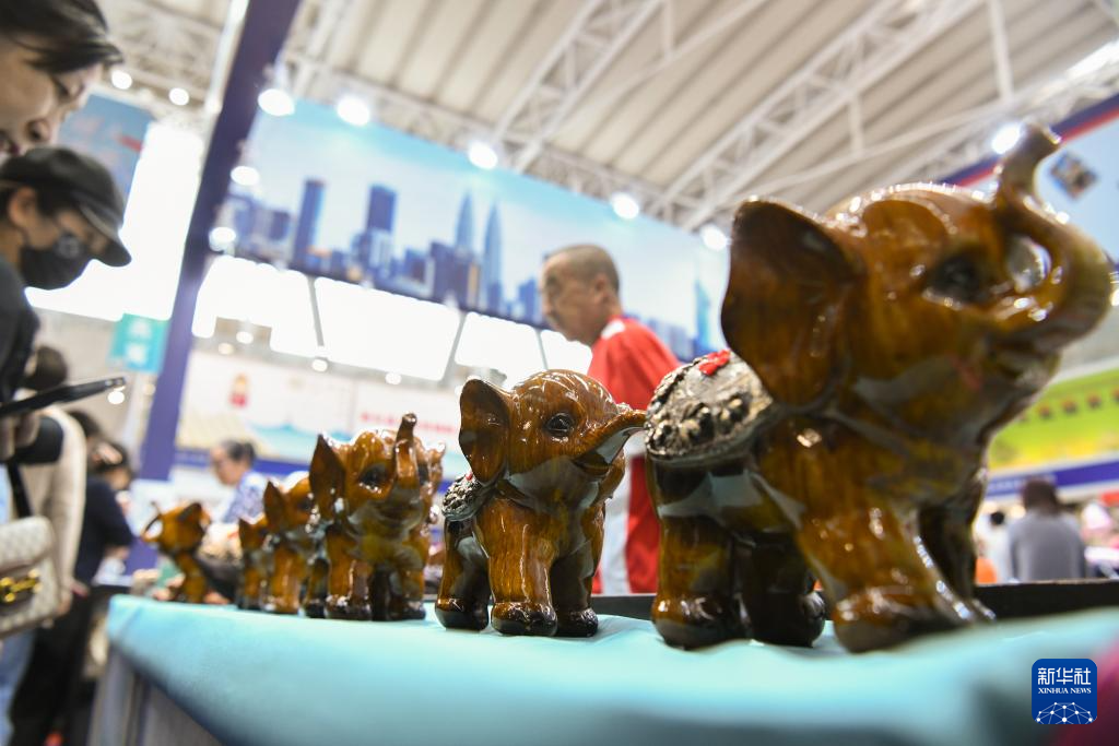 5月19日,在第八屆中俄博覽會現場,人們在欣賞馬來西亞生產制作的擺件。