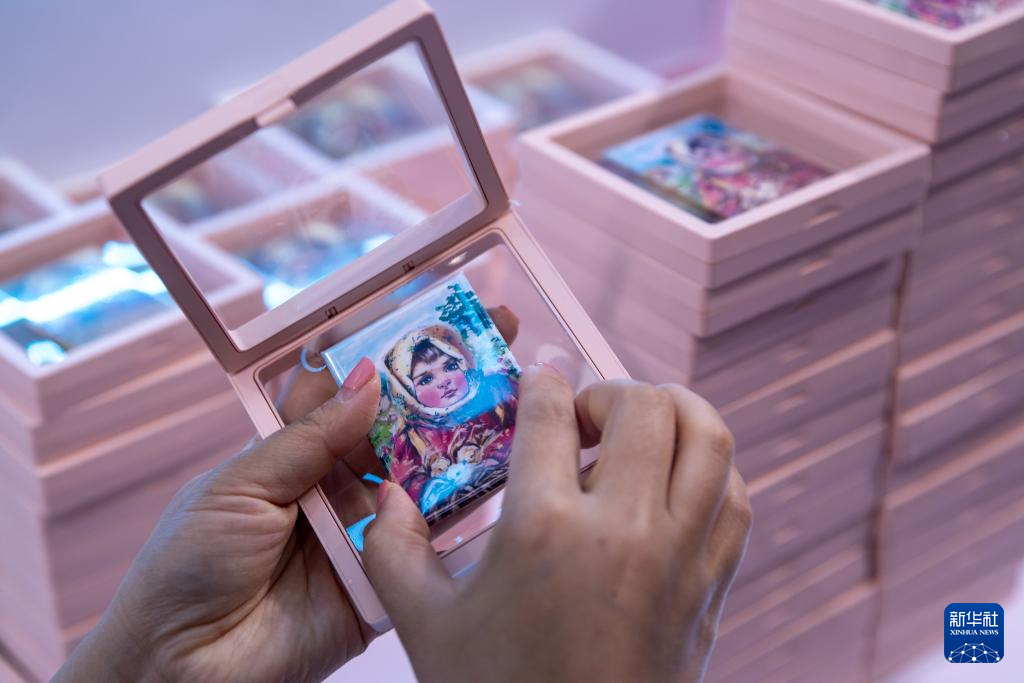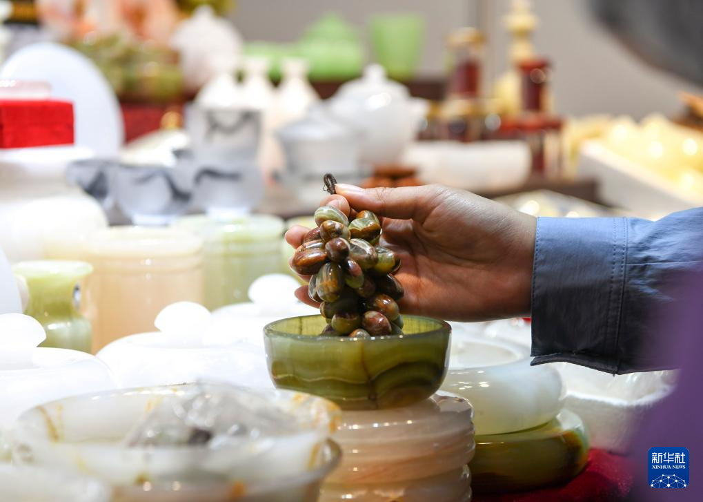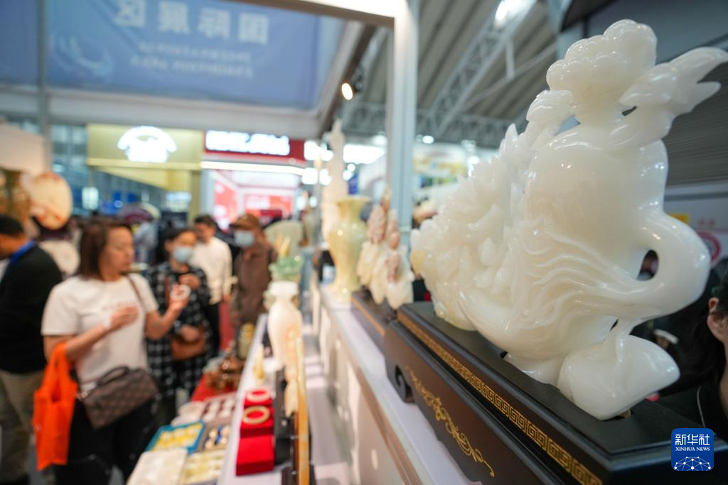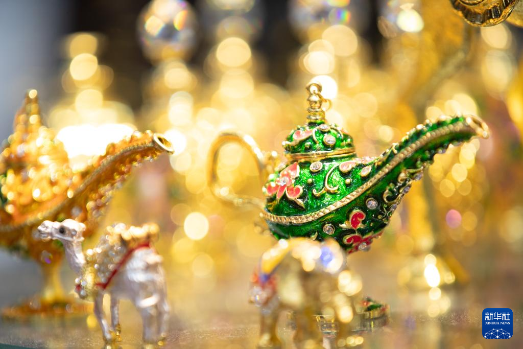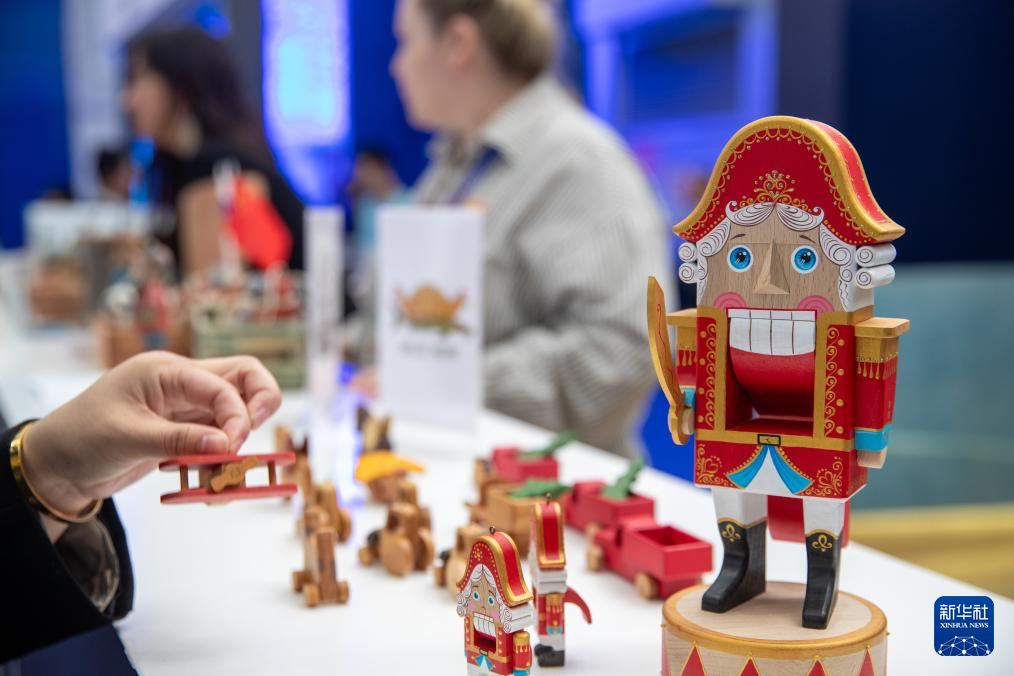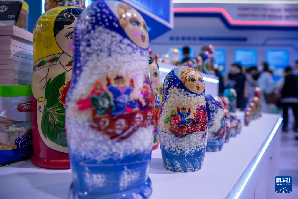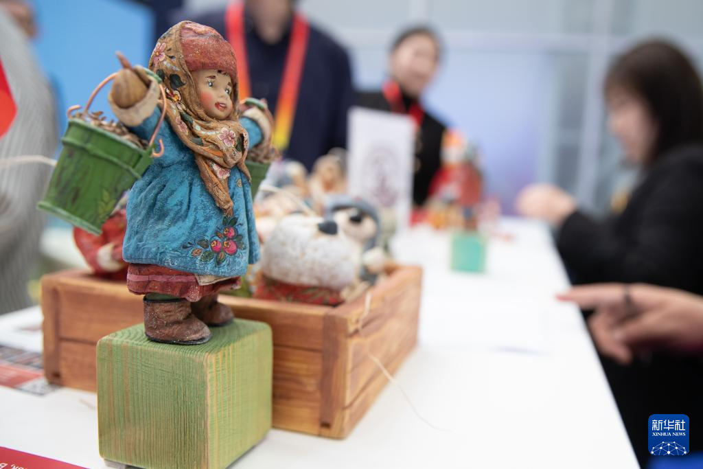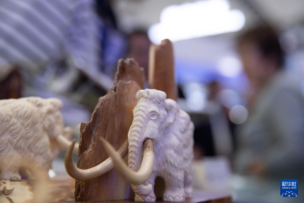 這是5月19日拍攝的第八屆中俄博覽會俄羅斯聯邦薩哈(雅庫特)共和國展區展示的工藝品。