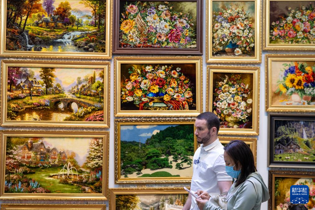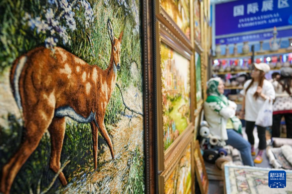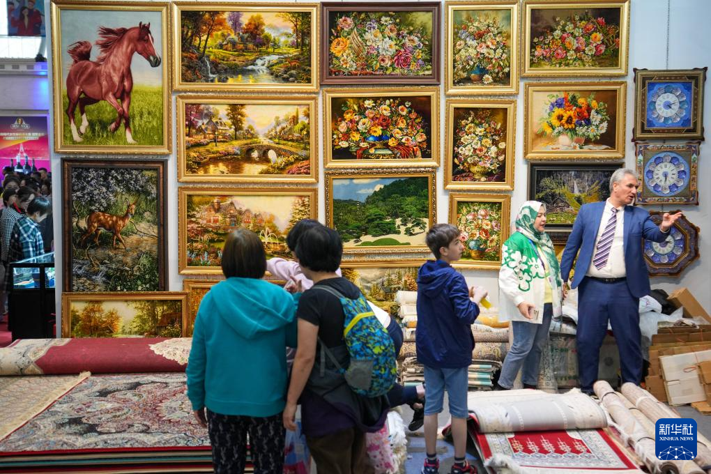 5月19日,在第八屆中俄博覽會現場,參會者在伊朗展區了解壁毯。