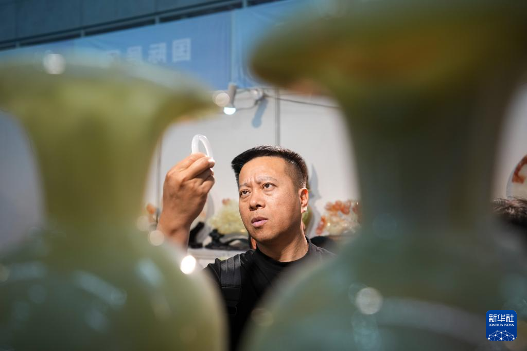 5月19日,在第八屆中俄博覽會現場,參會者在國際展區觀看一只手鐲。