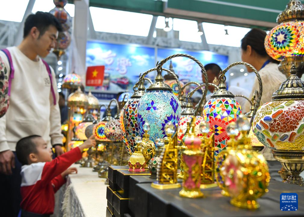 5月19日,在第八屆中俄博覽會現場拍攝的工藝品燈。