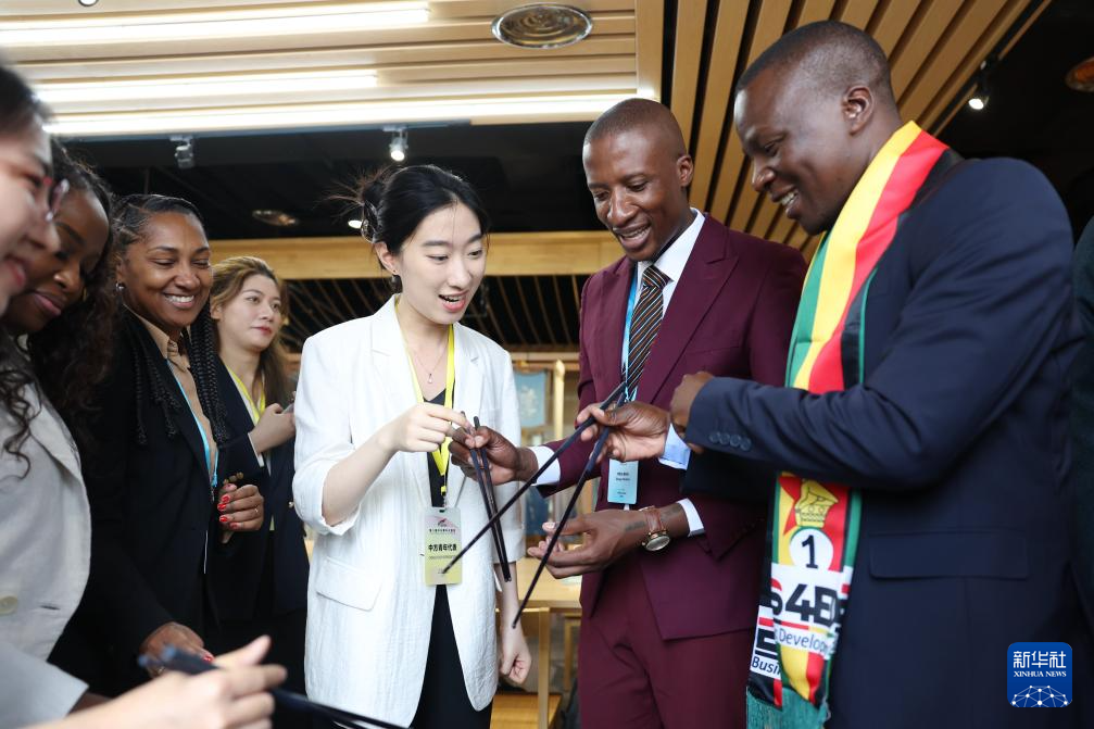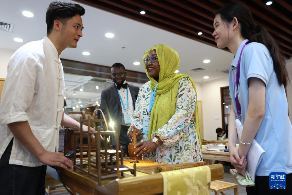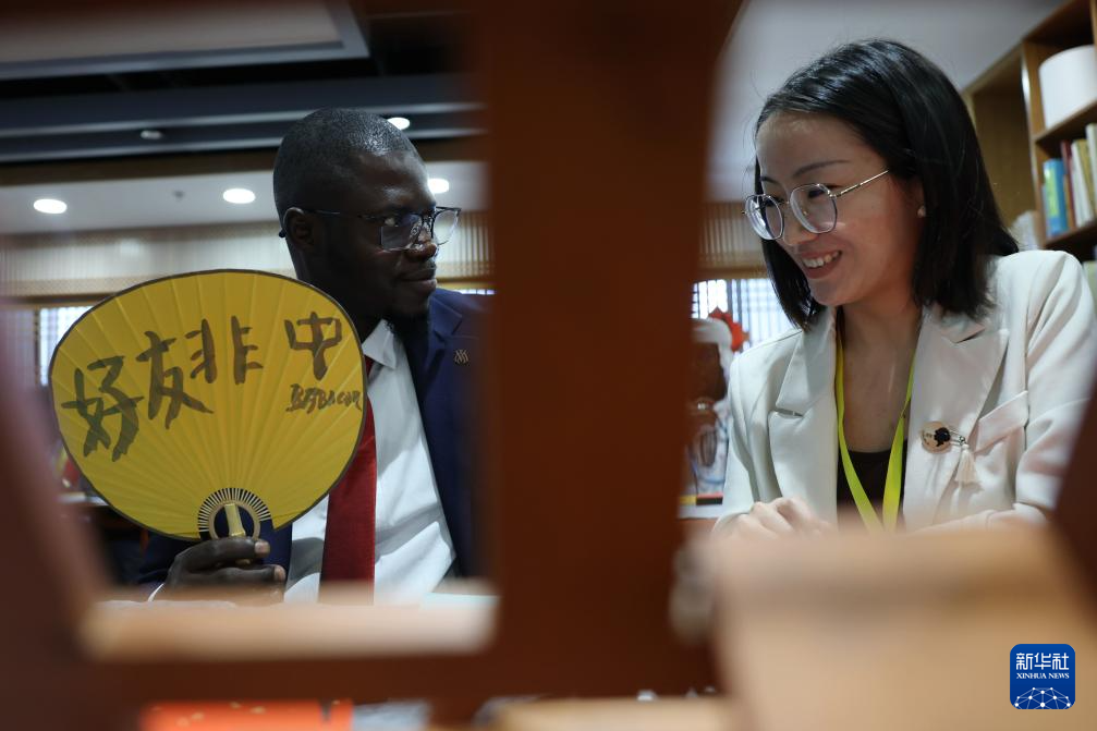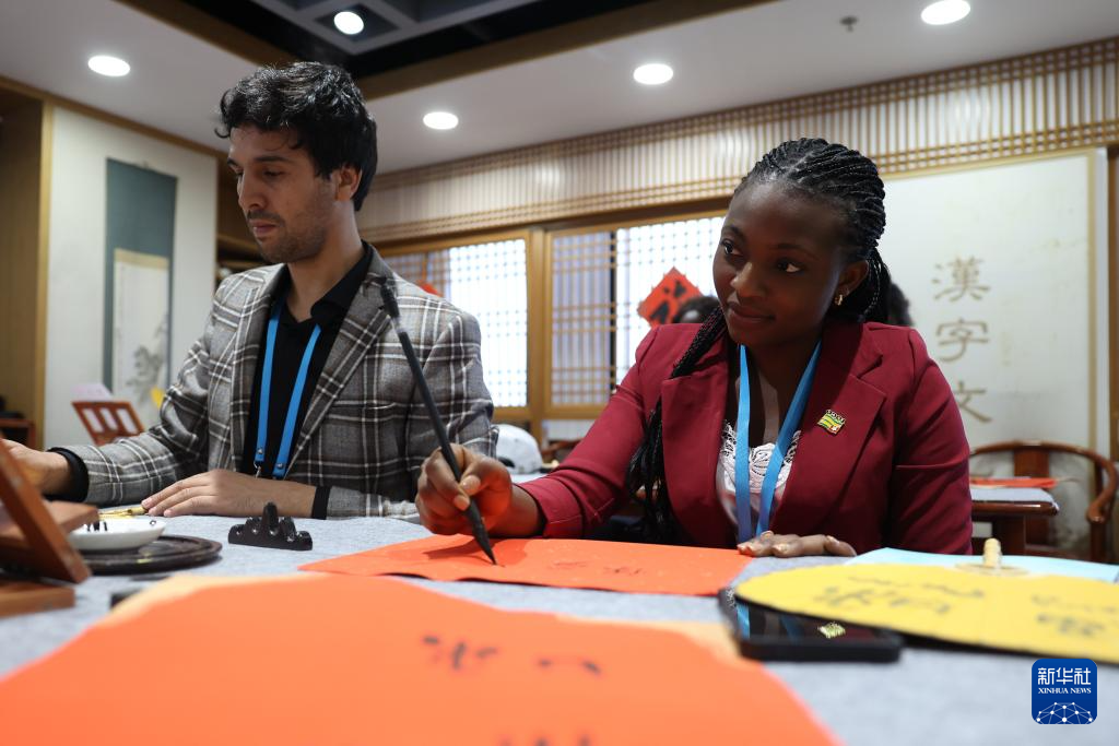 當日,參加第八屆中非青年大聯歡活動的中非青年代表走進位于北京的中國宋慶齡青少年科技文化交流中心,體驗印染、刺繡、書法等多種民俗,感受中國傳統文化的魅力,在交流互動中增進友誼。