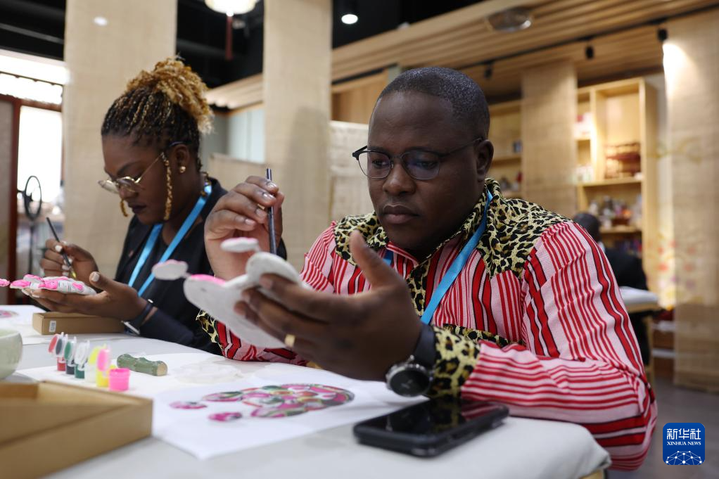 5月20日,非洲青年代表在體驗泥塑彩繪。