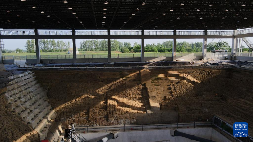 5月20日拍攝的武王墩墓考古發掘現場(無人機照片)。