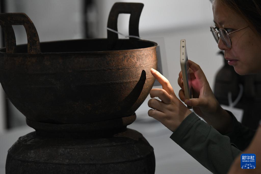 5月20日,考古人員在武王墩考古實驗室展示出土文物。
