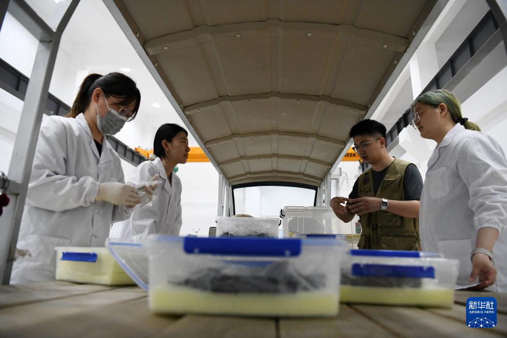 5月20日,考古人員在武王墩考古實驗室進行文物保護工作。