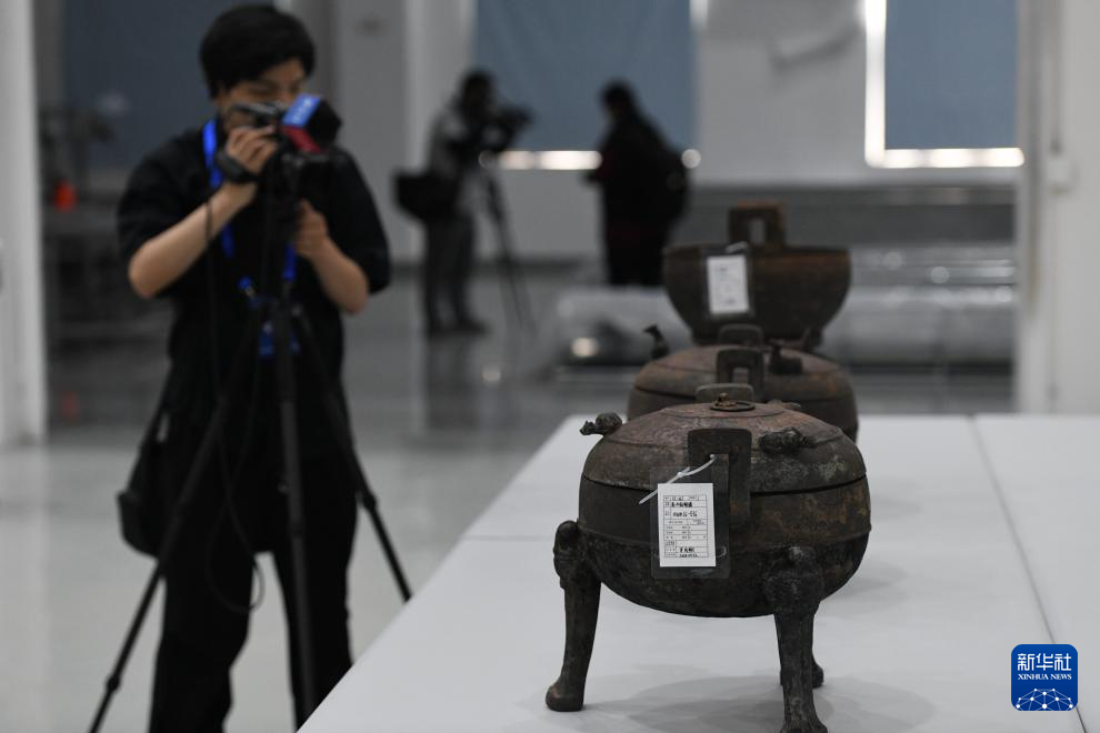 5月20日,媒體人員在武王墩考古實驗室進行拍攝。