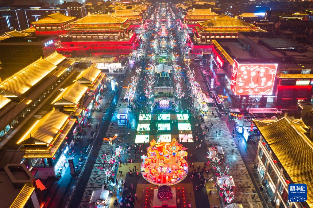 西安大唐不夜城景區景色(2024年2月2日攝,無人機照片)。