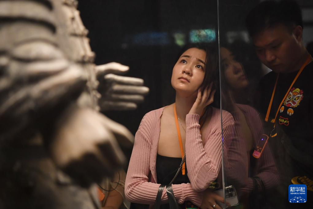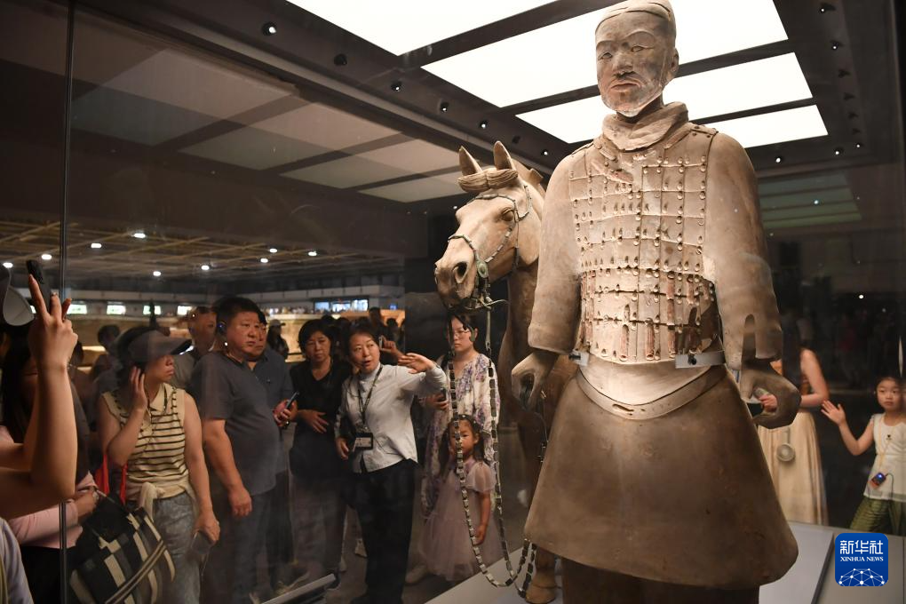 5月17日,游客在位于西安市臨潼區的秦始皇帝陵博物院內參觀鞍馬騎兵俑。