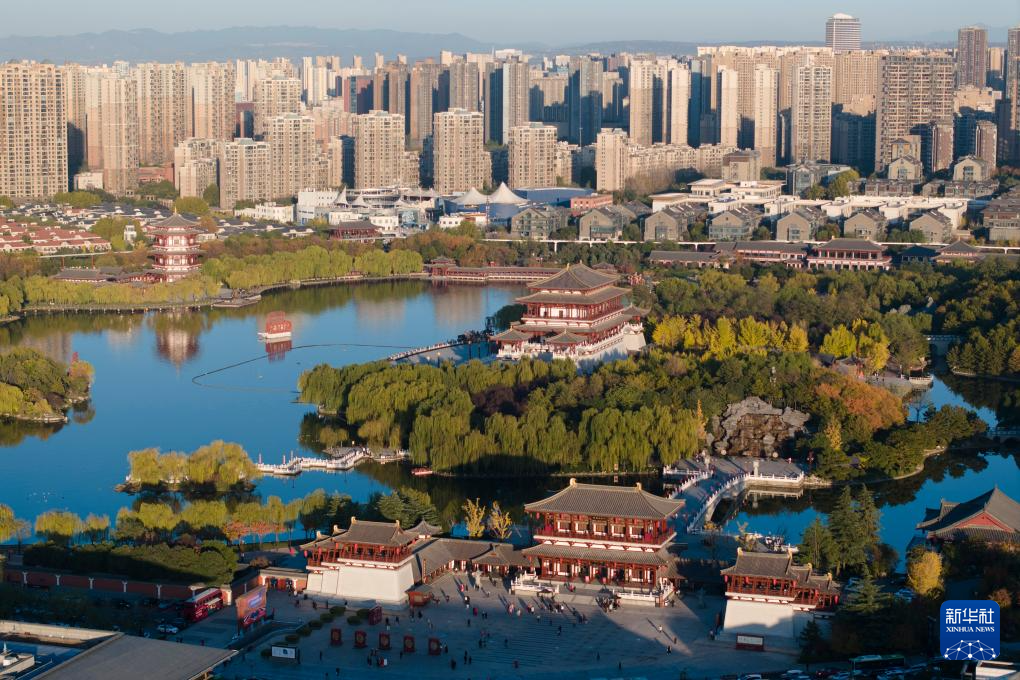 西安市大唐芙蓉園(2023年11月17日攝,無人機照片)。