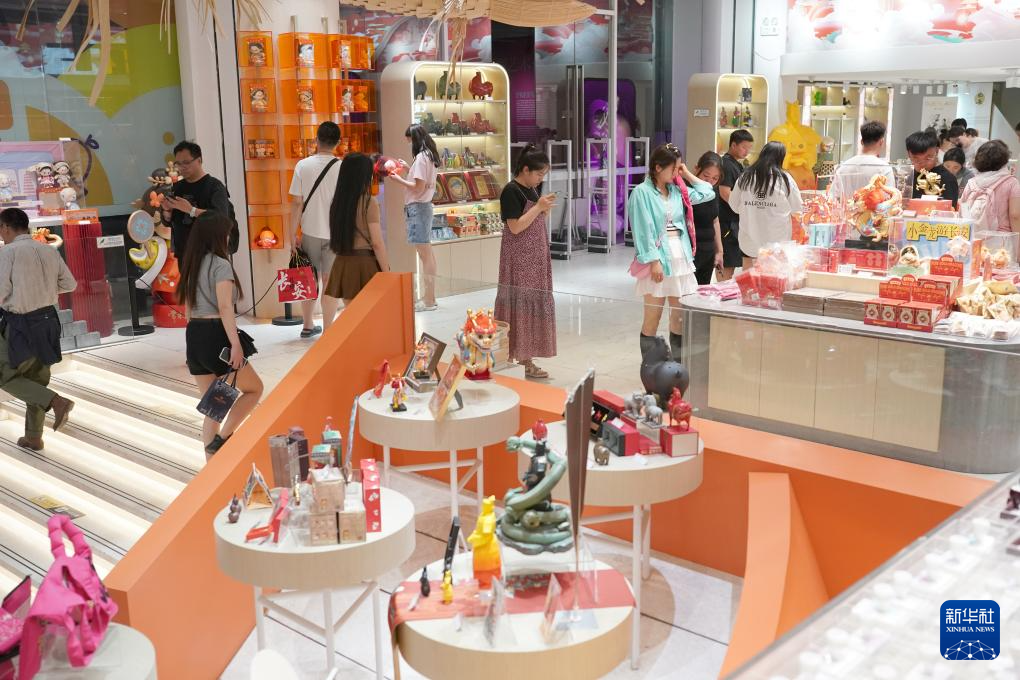 5月20日,游客在西安大唐不夜城景區一家文創產品店內游覽選購。