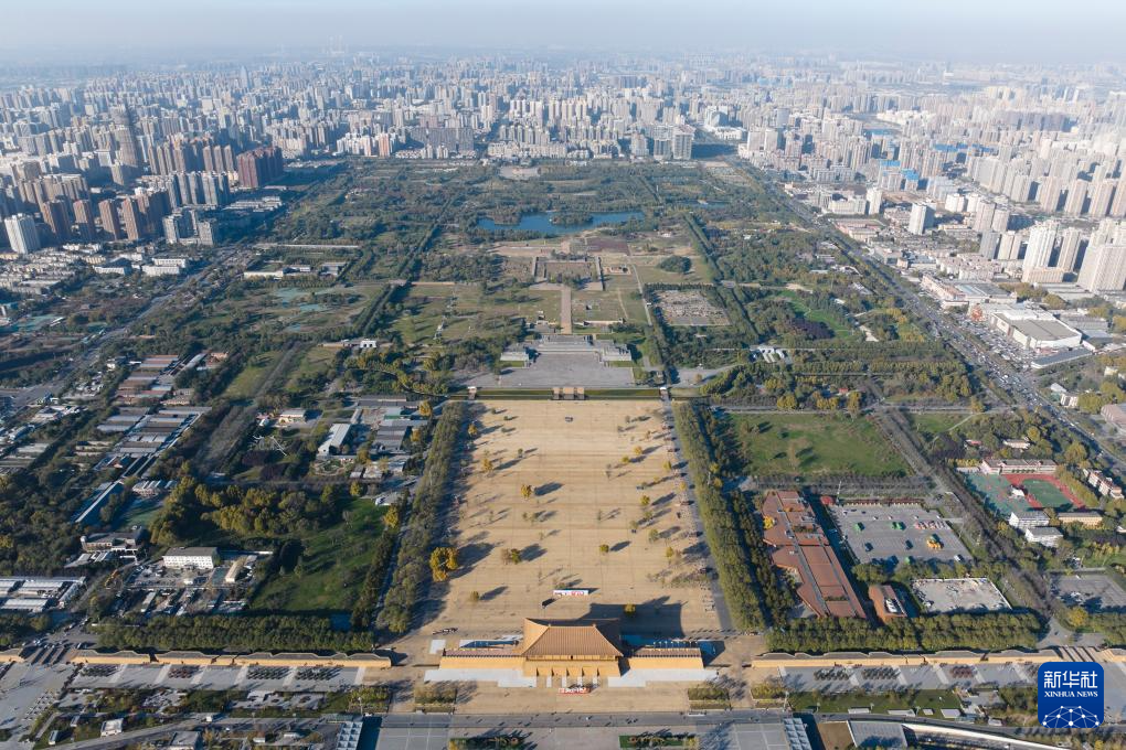 俯瞰西安市大明宮國家遺址公園(2023年11月17日攝,無人機照片)。