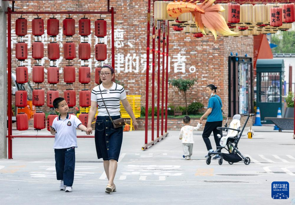 5月22日,游客在由無錫船廠舊址改造而來的紅船場商業園區休閑游玩。