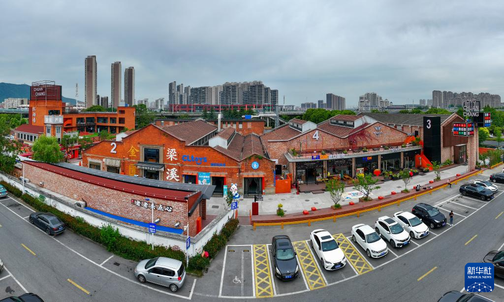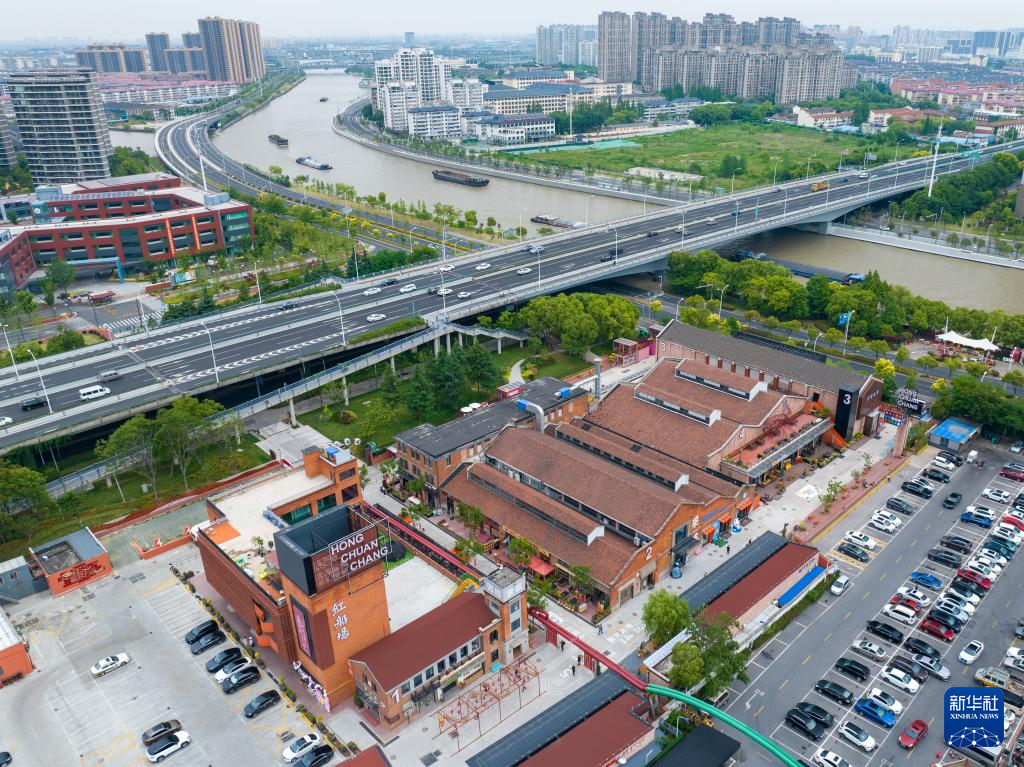 5月22日拍攝的由無錫船廠舊址改造而來的紅船場商業園區(無人機照片)。