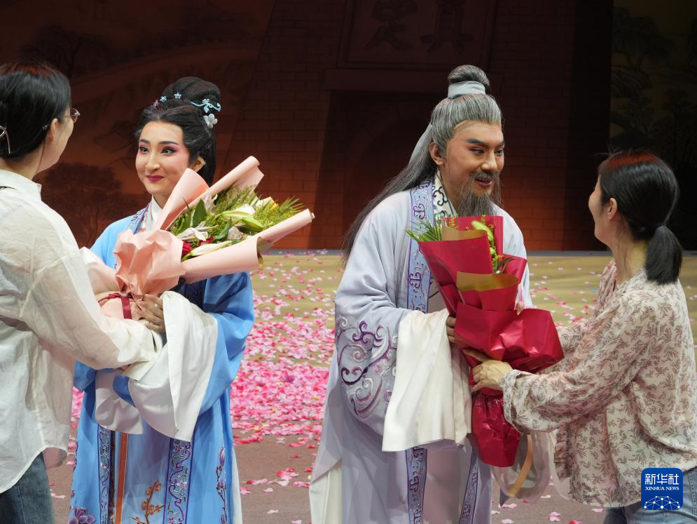 5月22日,觀眾向評劇《東垣大醫》的演員獻花。