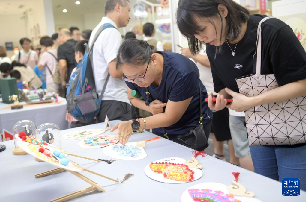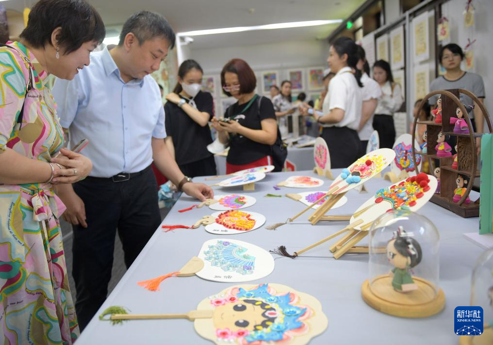 5月25日,市民在廣州市文化館參觀樂賢坊小學學生的漆畫作品。