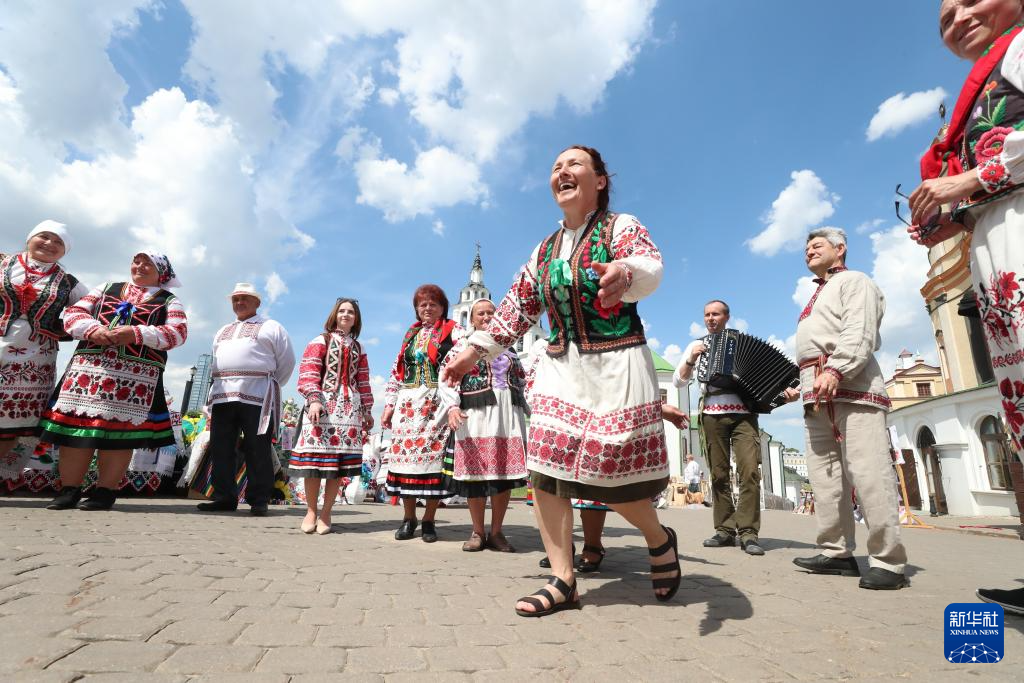 5月25日,演員在白俄羅斯明斯克表演傳統歌舞。