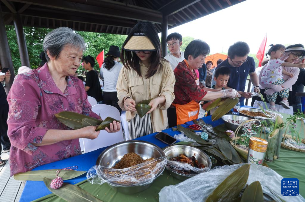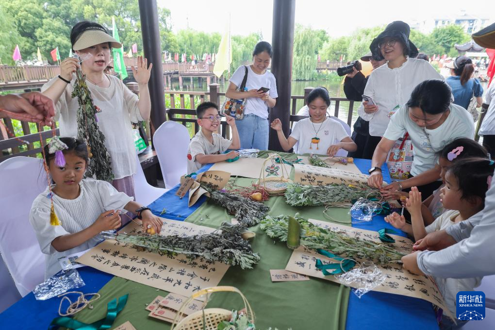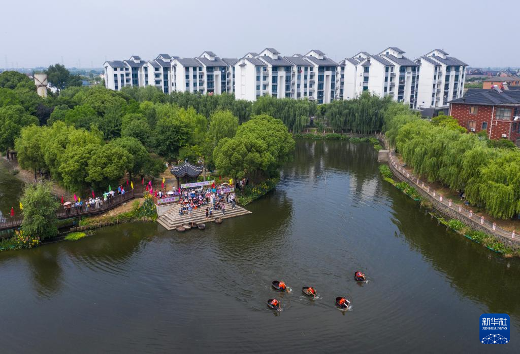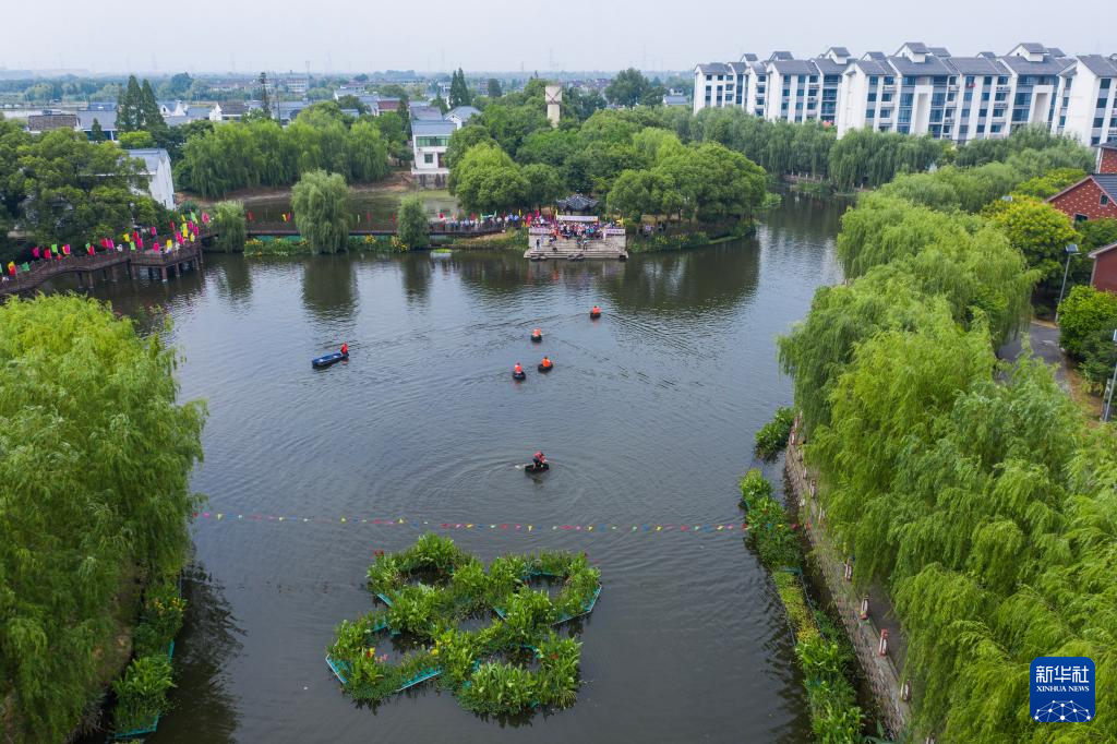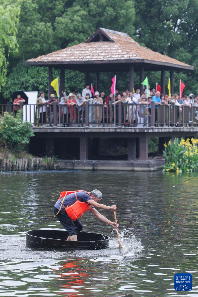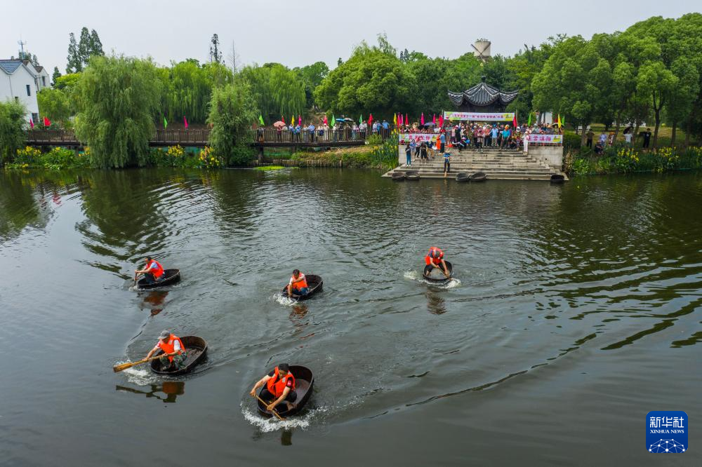 當日,浙江省湖州市吳興區東林鎮舉辦“慶端午 劃菱桶”水鄉端午趣味民俗活動,來自東林鎮各村的村民們在泉益村參加了水鄉劃菱桶比賽、荷塘釣小龍蝦、做艾草花束、包粽子等端午趣味民俗活動,在初夏時節呈現江南水鄉特有的迎端午氣氛。