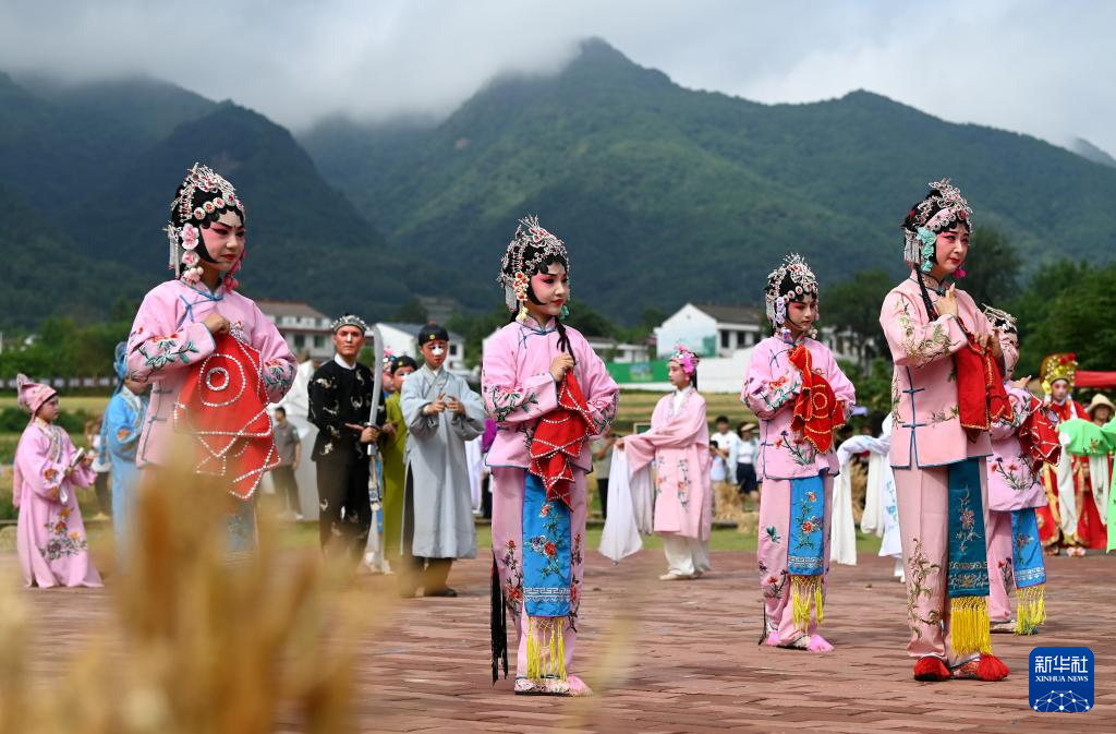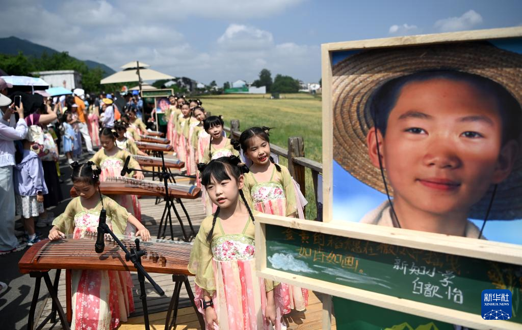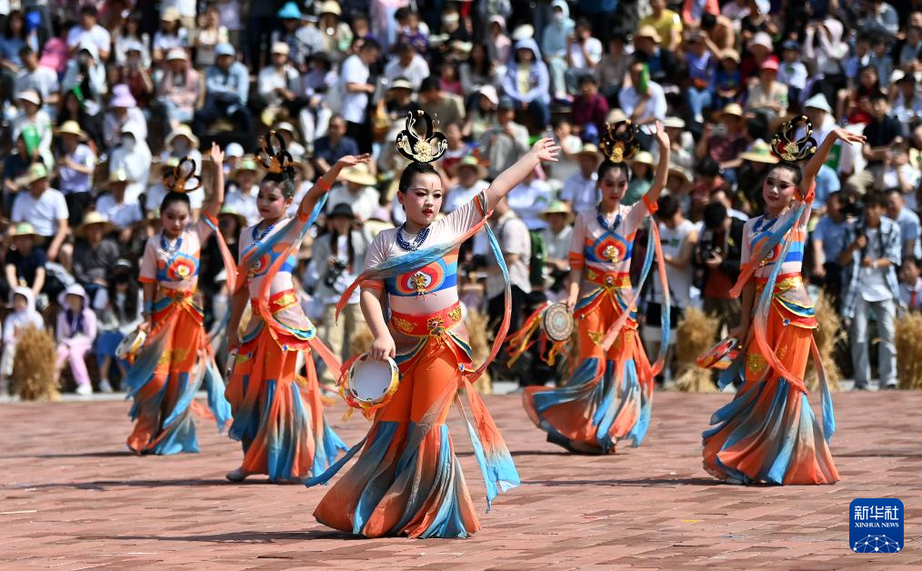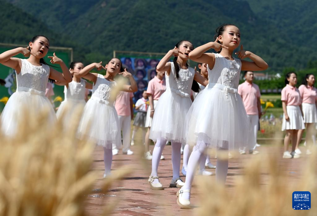 當日,“關中忙罷兒童藝術節”在陜西省西安市鄠邑區蔡家坡村舉行。來自新知小學教育集團的學生通過展演藝術、環保藝術、民間藝術、體驗藝術等形式將金黃的麥地變為藝術空間,在大自然中展示童趣與藝術。