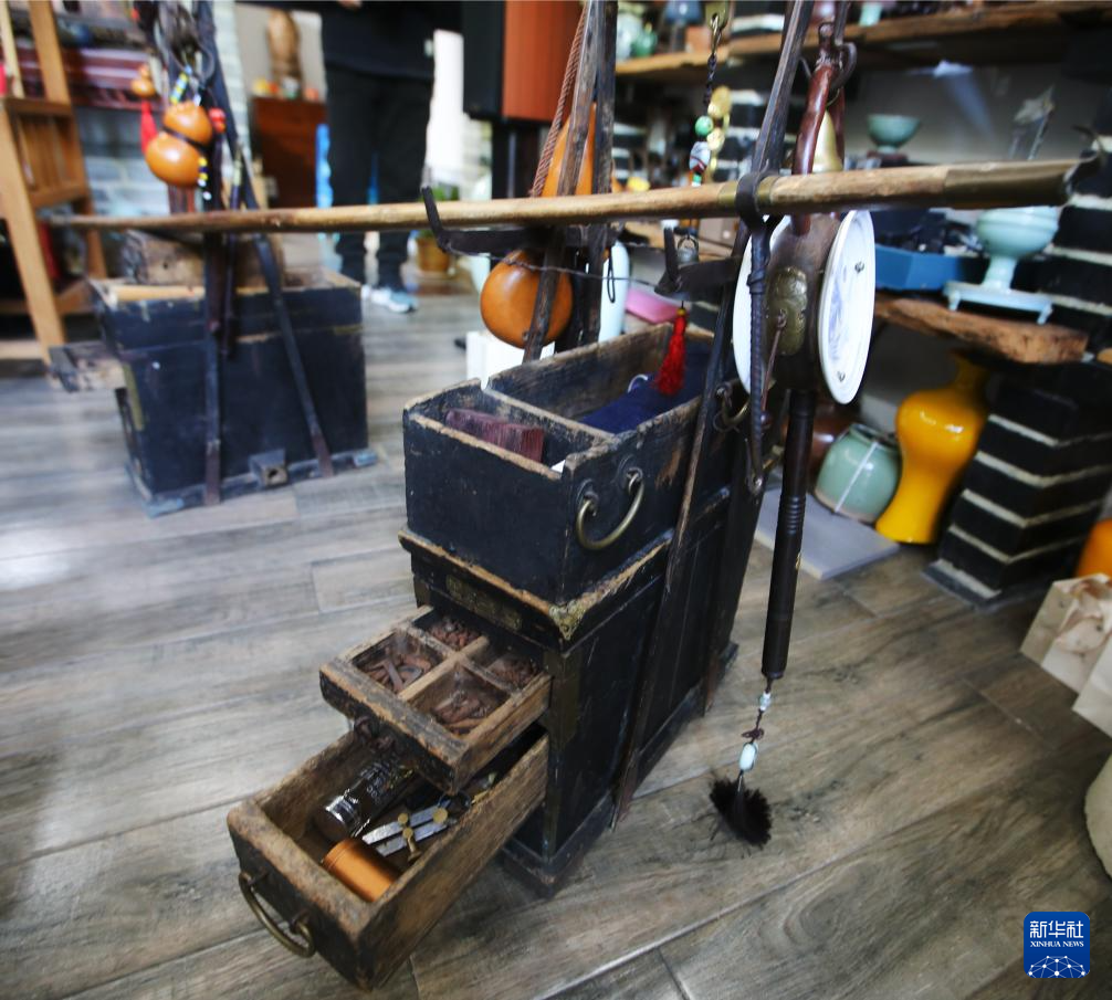 楊濤太爺爺留下的鋦匠挑子(5月8日攝)。