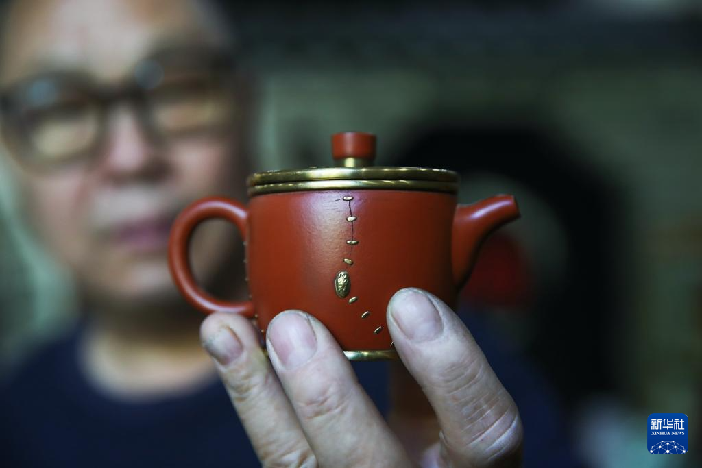 楊濤用“內鋦”技藝修復的茶壺(5月8日攝)。
