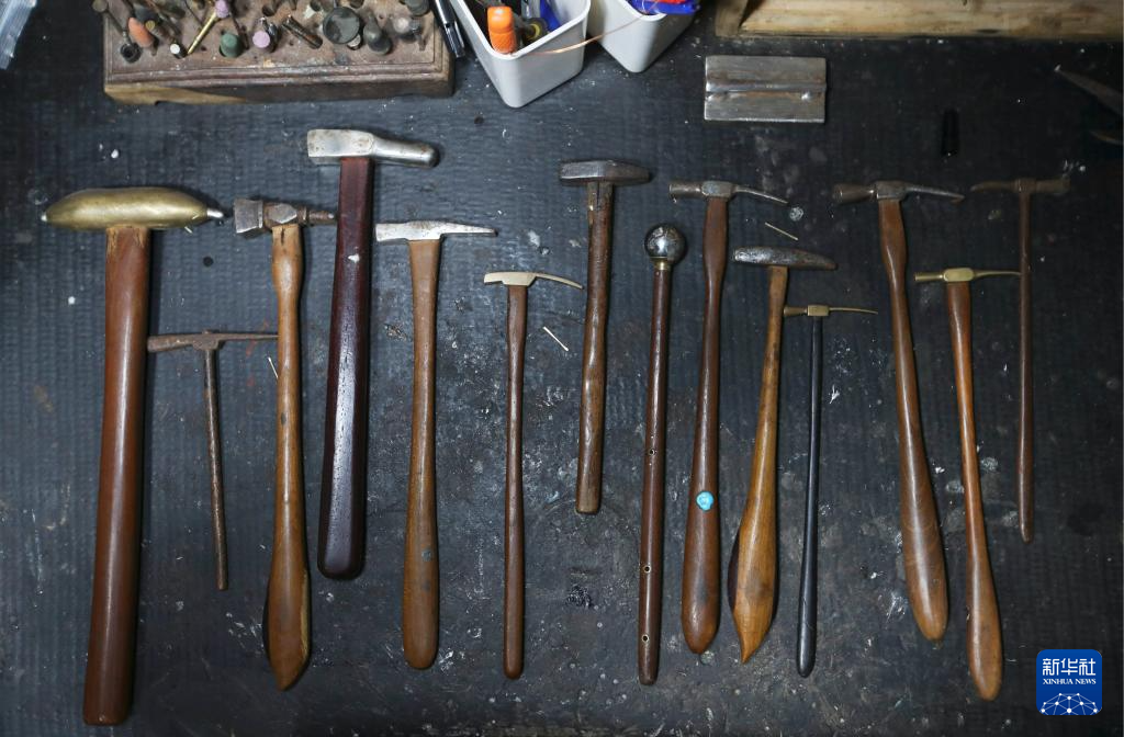 楊濤鋦瓷修復用的各種錘子(5月8日攝)。