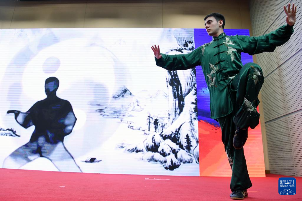 5月28日,來自巴西的獲獎選手馬飛龍在頒獎典禮上表演太極拳。
