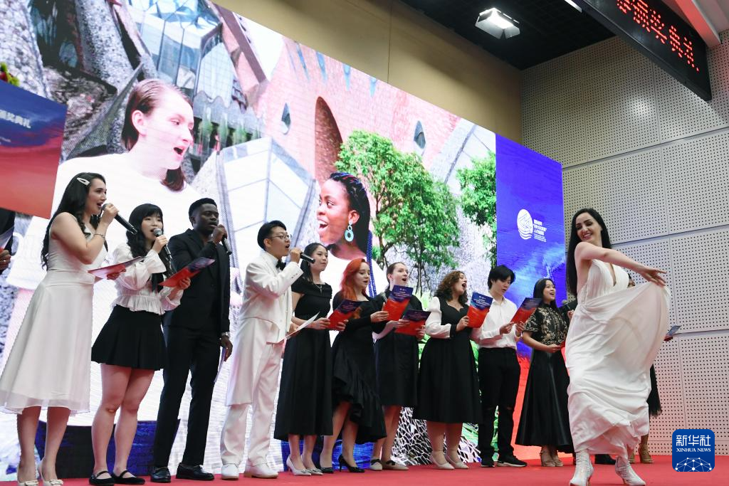 5月28日,在頒獎典禮上,由留學生組成的“留學中國云合唱團”表演合唱節目《夢想之路》。