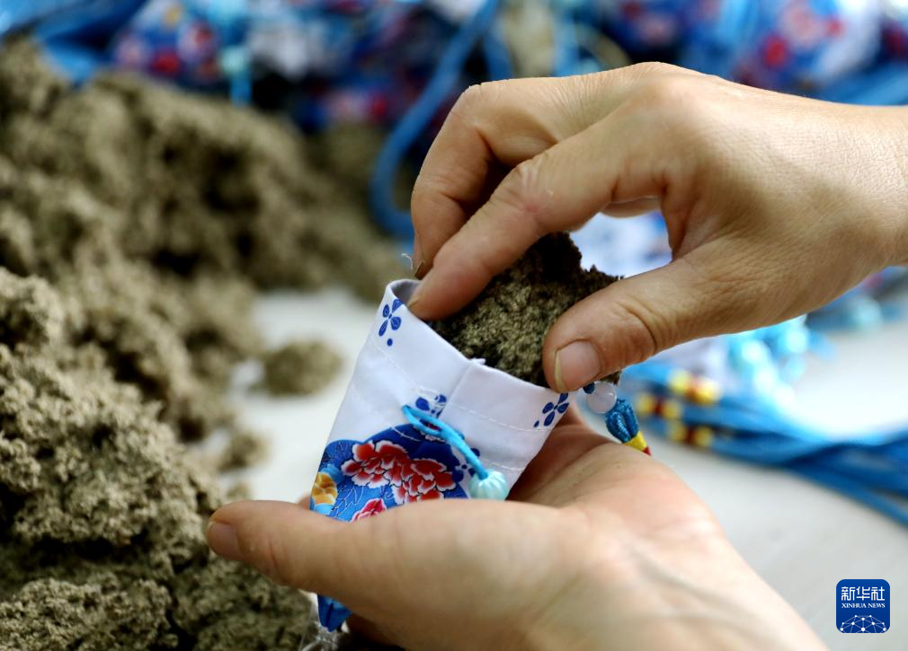 6月4日,河南省濟源市下冶鎮大嶺村群眾在制作端午香包。