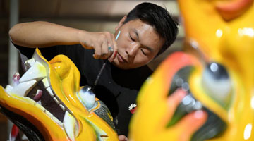 6月5日,小朋友在2024龍潭端午文化節活動上體驗兔爺兒彩繪。