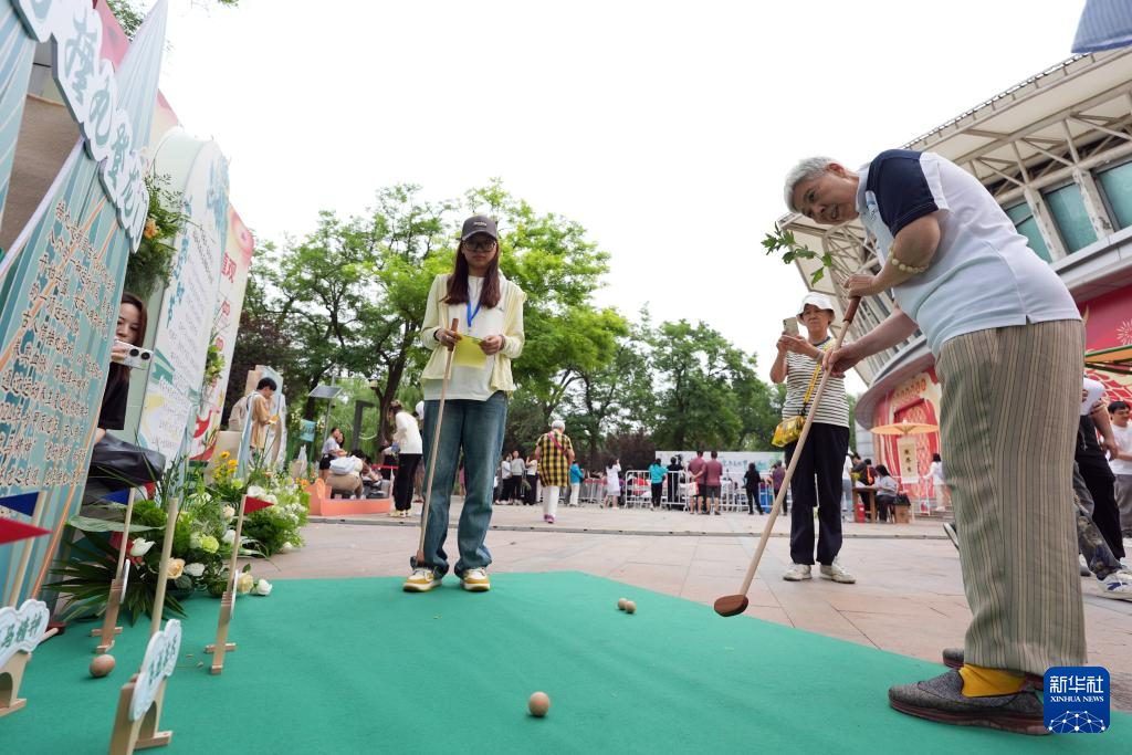 6月5日,游客在2024龍潭端午文化節活動上體驗“捶丸”。