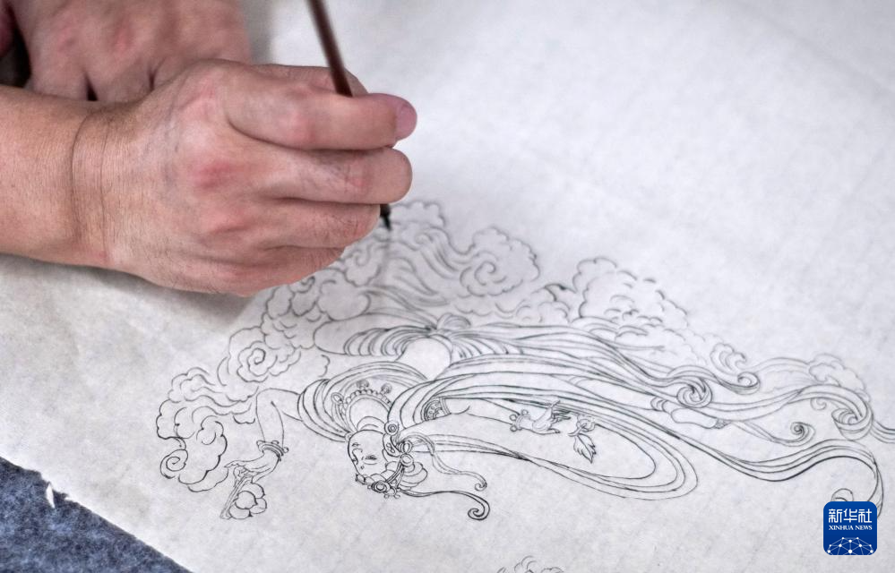 朱江在繪制雕漆作品線稿(6月5日攝)。