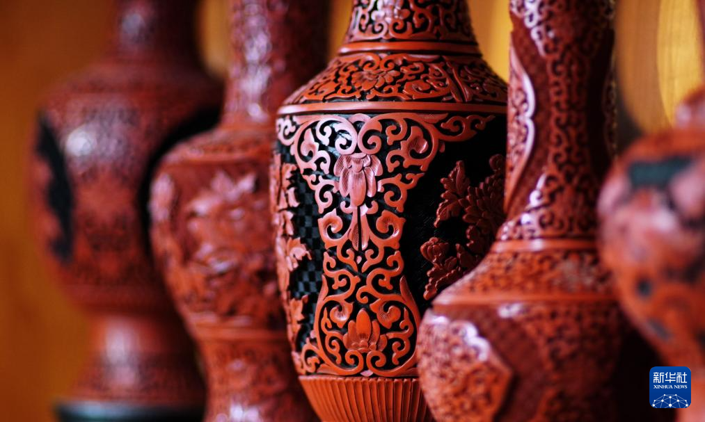 朱江設計的實用性雕漆工藝品(6月5日攝)。