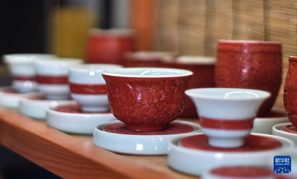 2017年,朱江與廊坊師范美術學院的師生成立工作坊,共同創作了青瓷雕漆茶具、婚慶飾品、現代潮玩擺件和裝飾藝術品等雕漆作品,讓人們看到了非遺的新面孔,做到了創新性發展和創造性轉化,并吸引了許多年輕人關注雕漆文化。近年來,朱江設計和雕刻的作品獲得國內外30余個獎項。