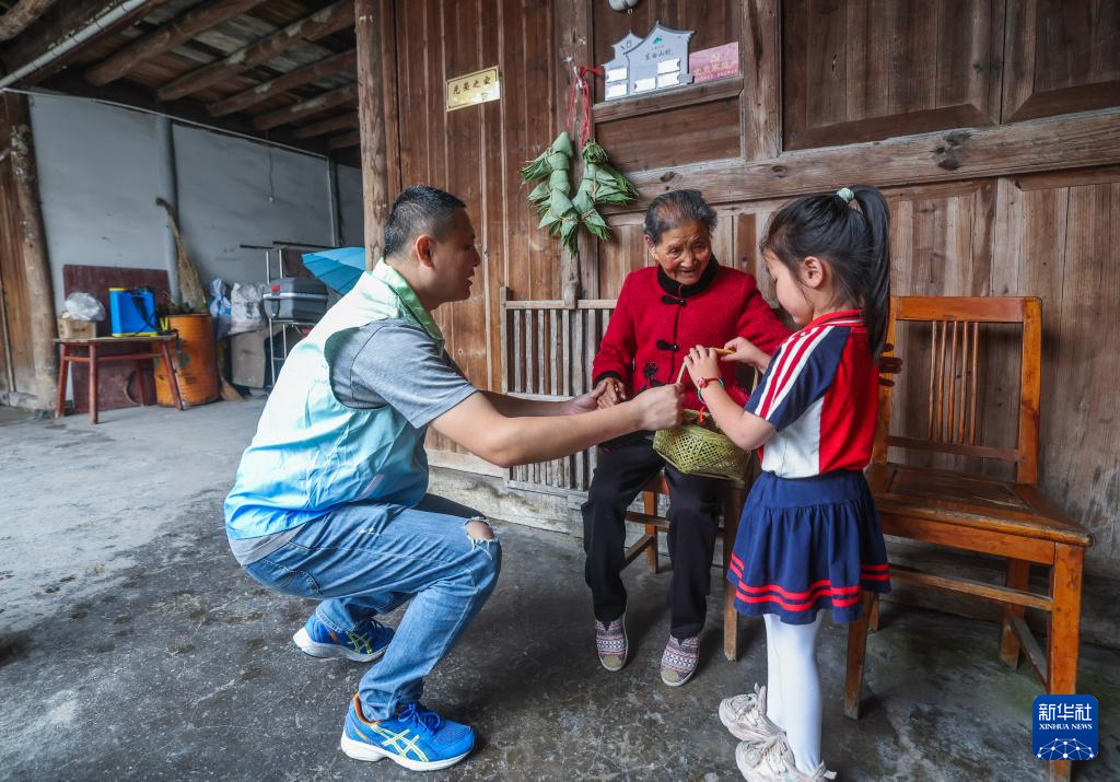 6月5日,志愿者上門給東白山村行動不便的老人送上端午節禮。