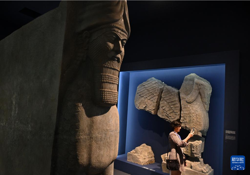 收藏于摩蘇爾博物館中的拉瑪蘇雕塑遭到破壞后碎裂為數百塊殘片。左為拉瑪蘇雕塑的仿制縮小件,右為根據摩蘇爾博物館提供的三維數據制作的拉瑪蘇雕塑殘片(6月6日攝)。