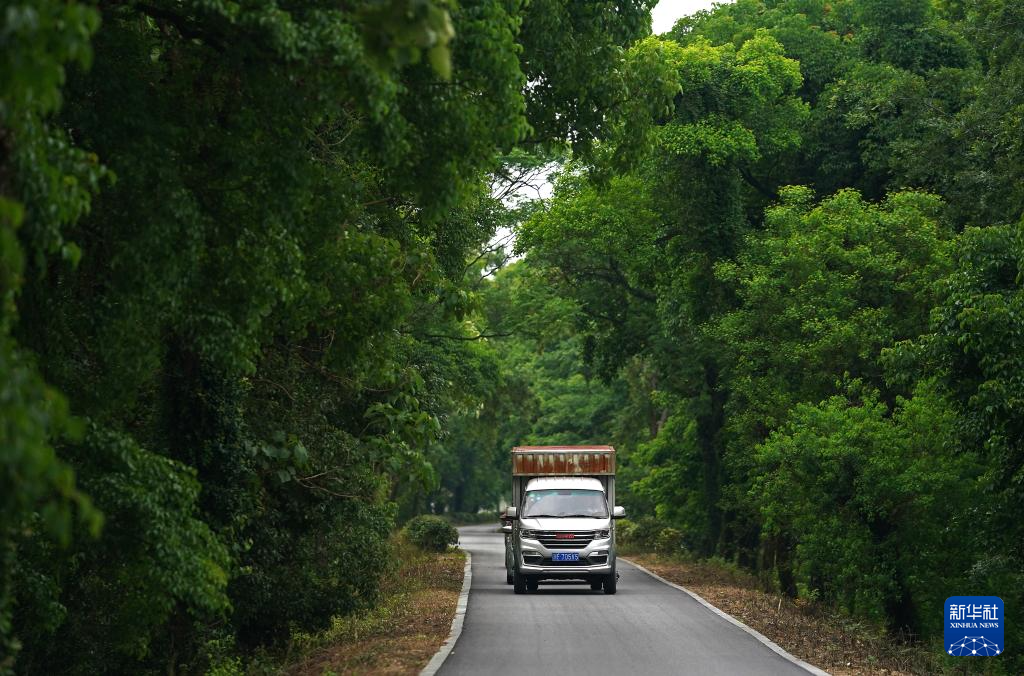裝滿孟戲服裝、道具的貨車行駛在送戲下鄉的路上(5月10日攝)。