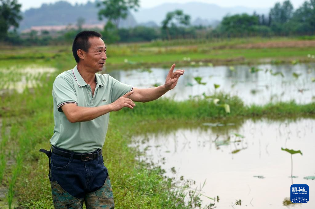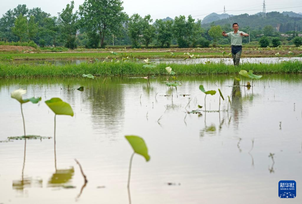 在廣昌縣甘竹鎮甘竹村,李安平在荷塘邊哼唱孟戲高腔(5月11日攝)。