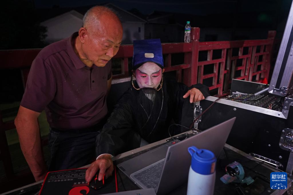在廣昌縣頭陂鎮西港村,李安平在演出前調試燈光(5月10日攝)。