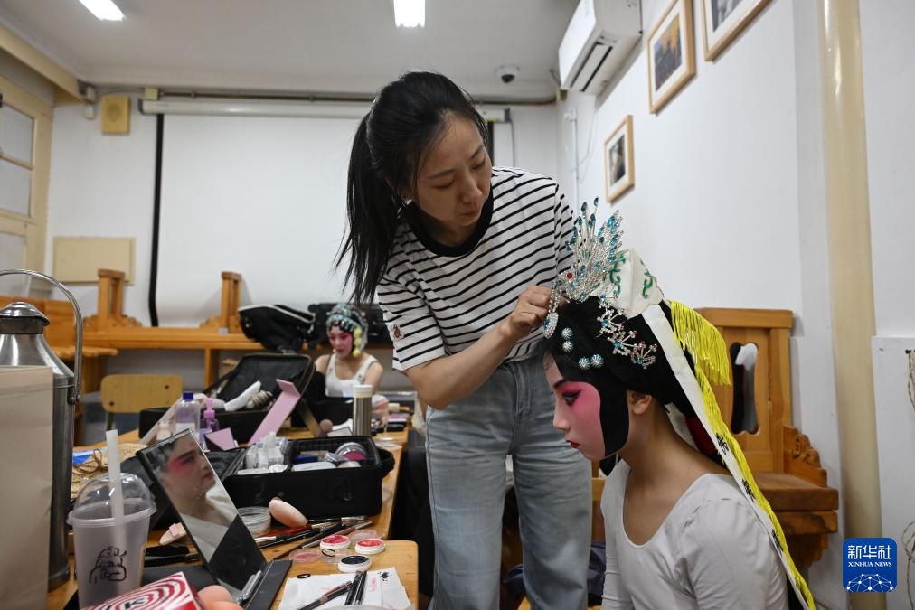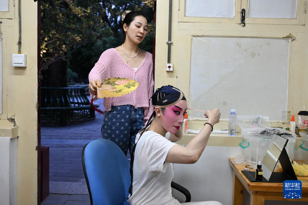 6月9日,昆曲演員在演出前化妝。